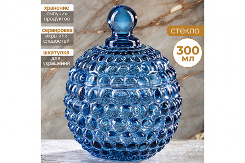 БЫЛО 670 руб! Горшочек д/меда 300 мл 11*11*13,5 см "Пузырьки" синий