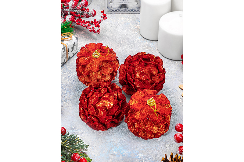 Набор 4 новогодних шаров 8*8 см "Шишка красная"