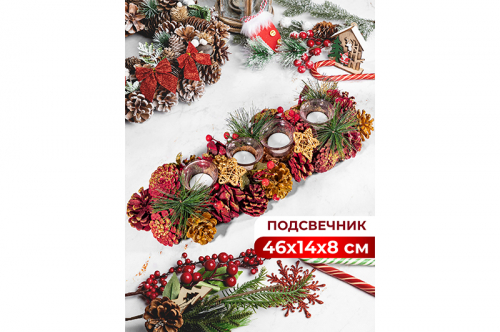 Новогоднее украшение подсвечник 46*14*8 см на 4 свечи, прямоугольный