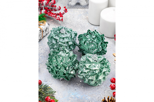 Набор 4 новогодних шаров 8*8 см "Шишка зелёная в серебре"