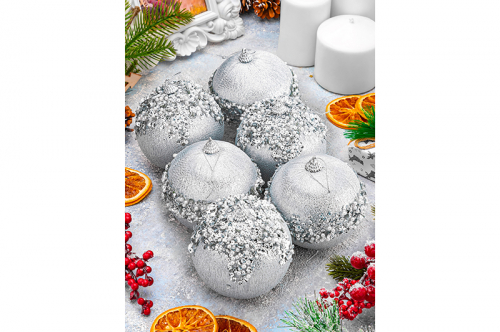 Набор 6 новогодних шаров 10*10 см "Жемчужная россыпь" серебро