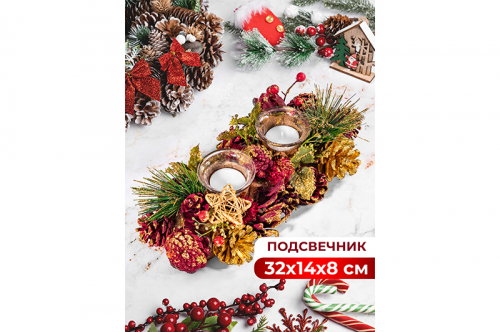 Новогоднее украшение подсвечник 32*14*8 см на 2 свечи, прямоугольный