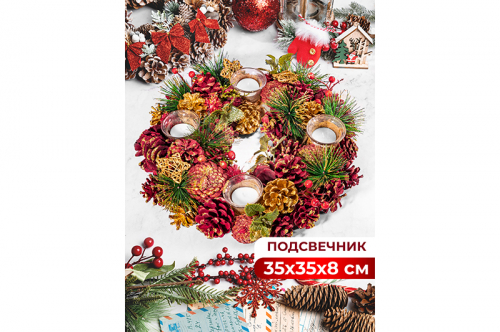 Новогоднее украшение подсвечник 35*35*8 см на 4 свечи круг