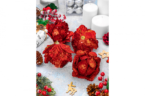 Набор 4 новогодних шаров 10*10 см "Шишка красная"