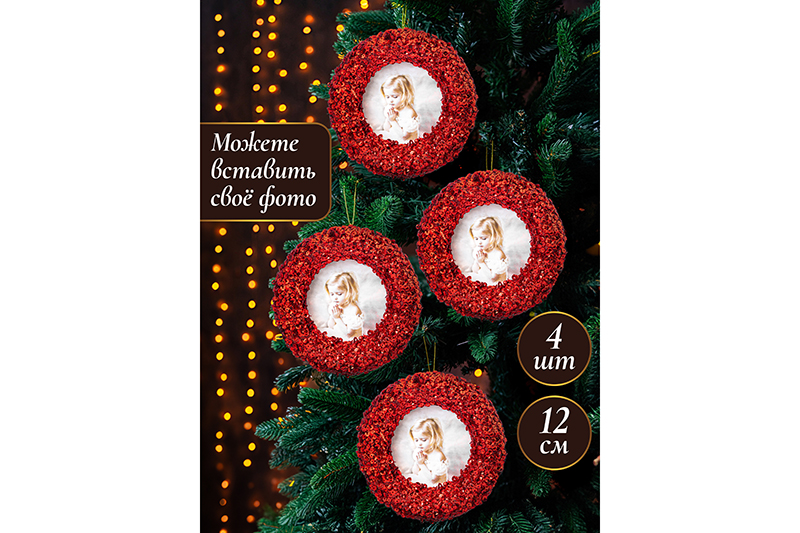 Набор 4 елочных игрушек 12*12 см "Фоторамка" красный