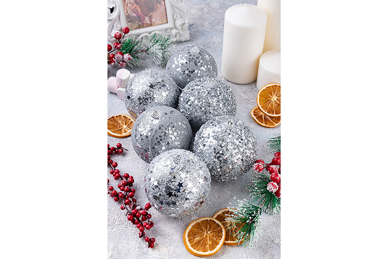 Набор 6 новогодних шаров 9,5*9,5 см "Серебро"