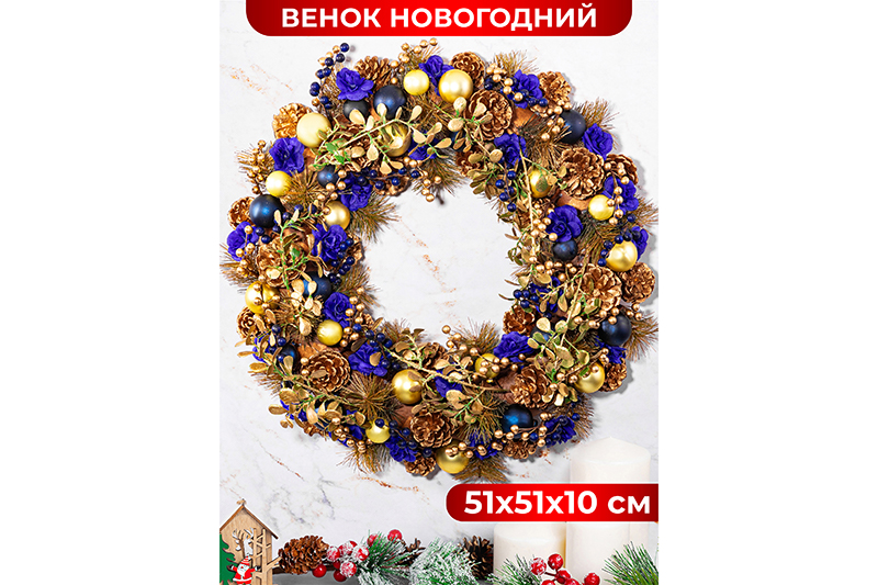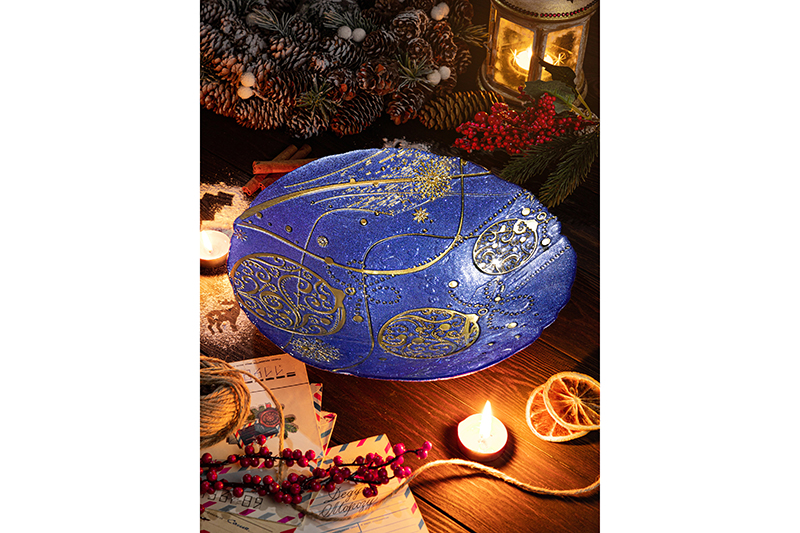 Блюдо глубокое 30*30*6 см "Елочные игрушки" синее