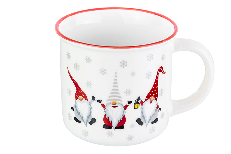 Кружка 400 мл 13*9,5*8,8 см "Гномики с елкой" с красной каймой NEW BONE CHINA