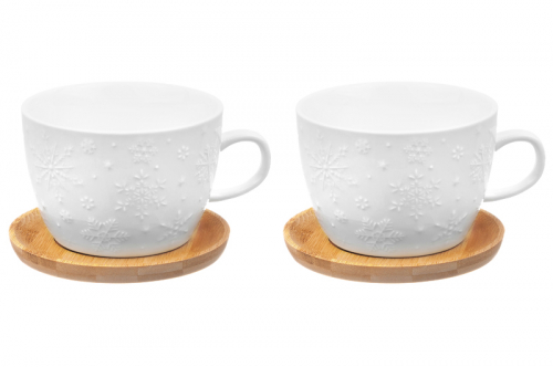 Чашка для капучино и кофе латте 500 мл "Снежинки" + дерев. подстав. (2 шт.)