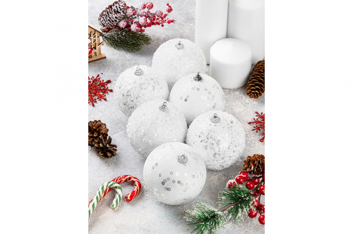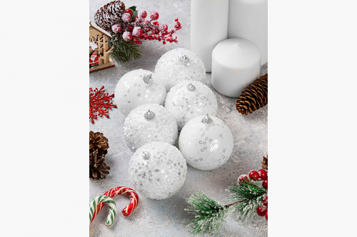 Набор 6 новогодних шаров 8*8 см "Белый"