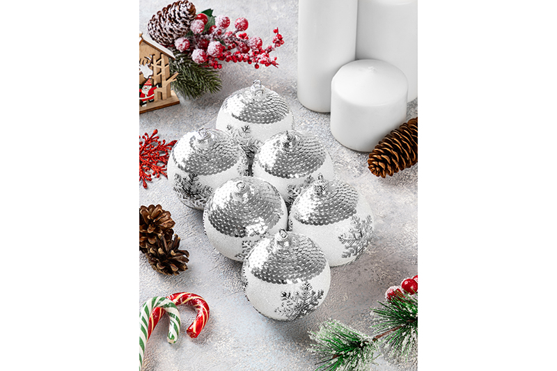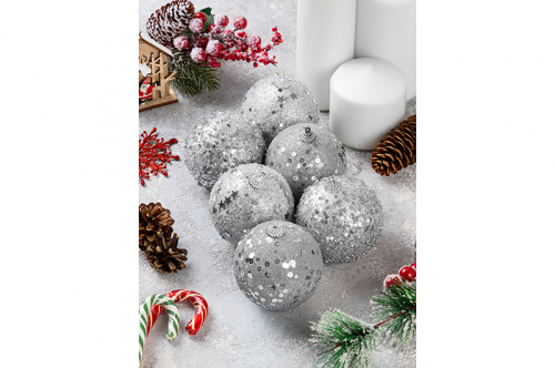 Набор 6 новогодних шаров 8*8 см "Серебро"