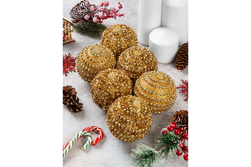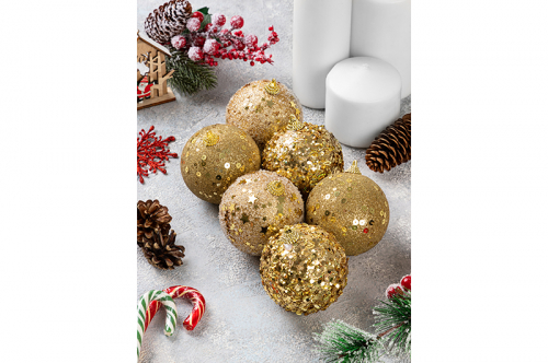 Набор 6 новогодних шаров 8*8 см "Золото"