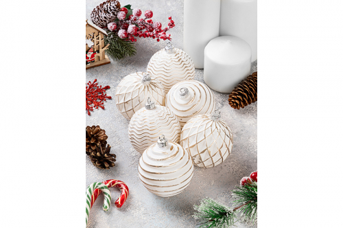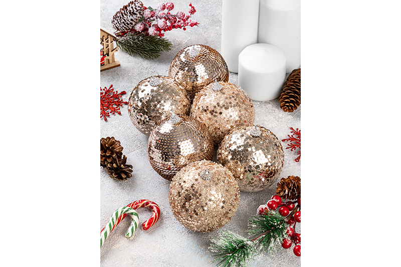Набор 6 новогодних шаров 8*8 см "Шампань"