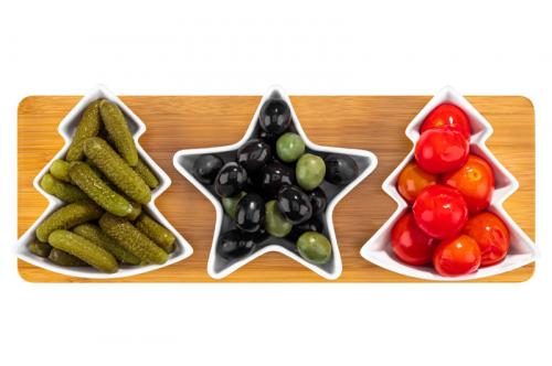 Набор д/специй 3 пр. 15,5*11*11,5 "Елочки" на дер. подставке