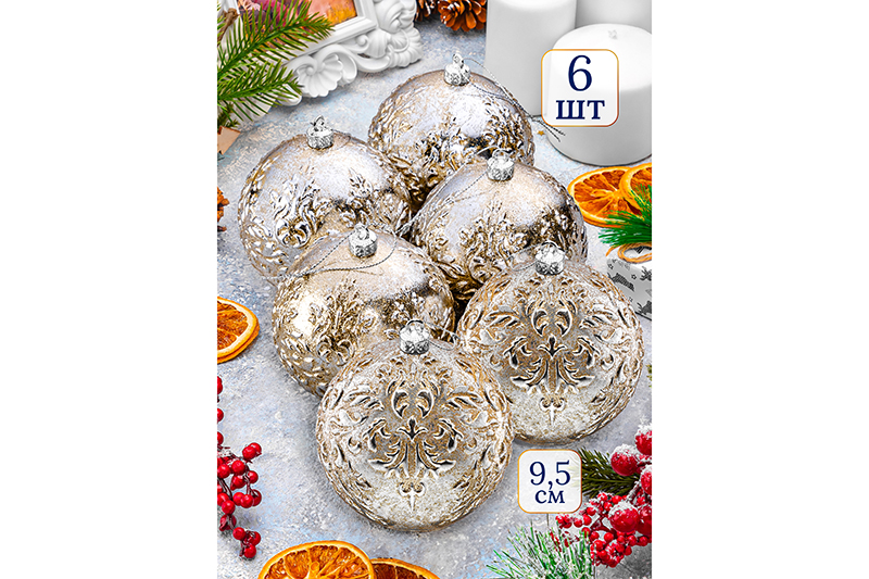 Набор 6 новогодних шаров 9,5*9,5 см "Шампань"