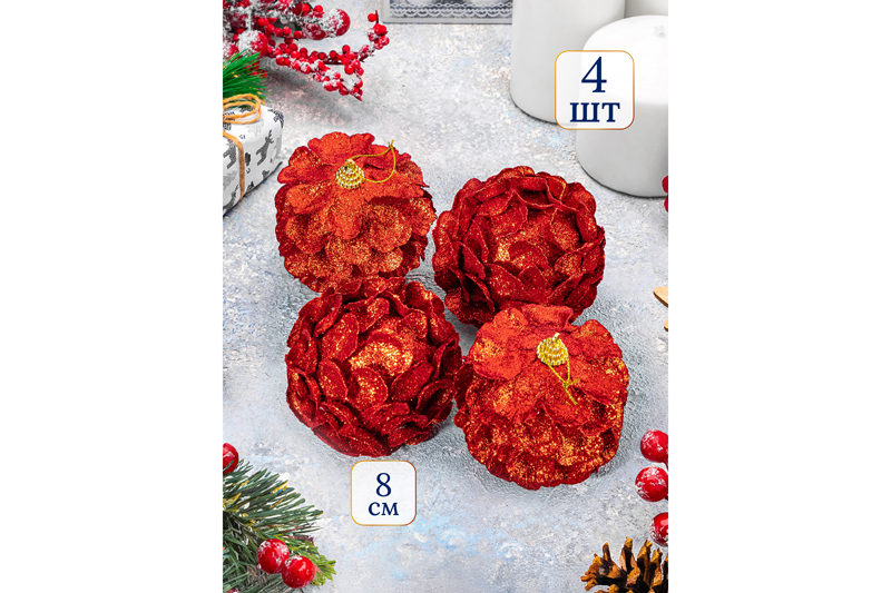 Набор 4 новогодних шаров 8*8 см "Шишка красная"
