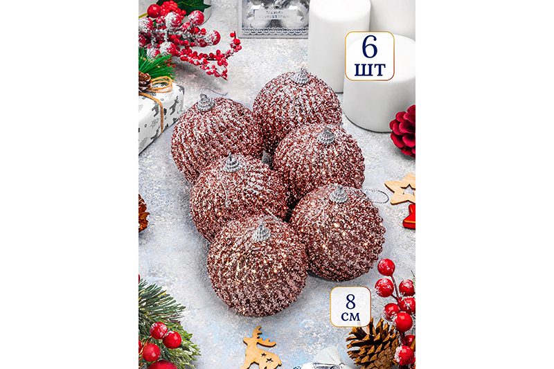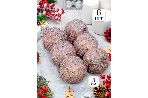 Набор 6 новогодних шаров 8*8 см "Шампань"