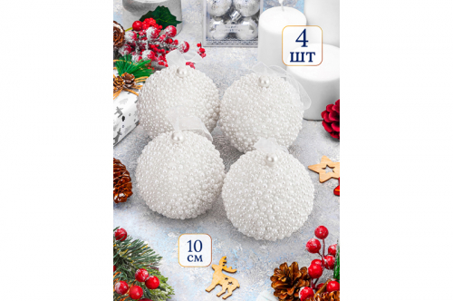 Набор 4 новогодних шаров 10*10 см "Жемчуг"