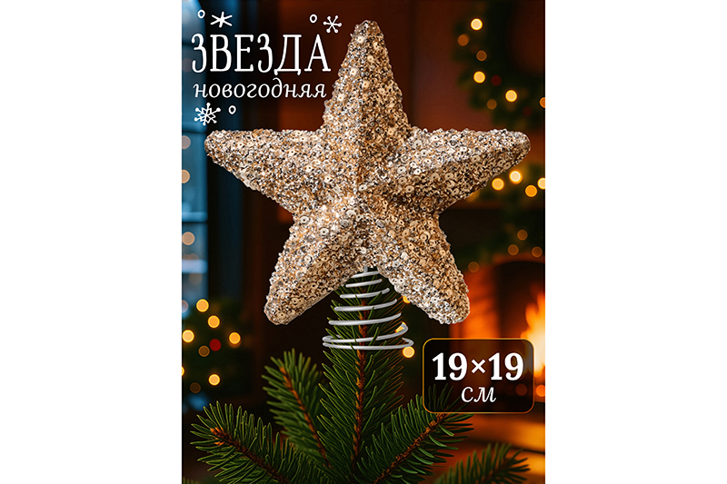 Новогодняя звезда на елку 19*19 см "Шампань"