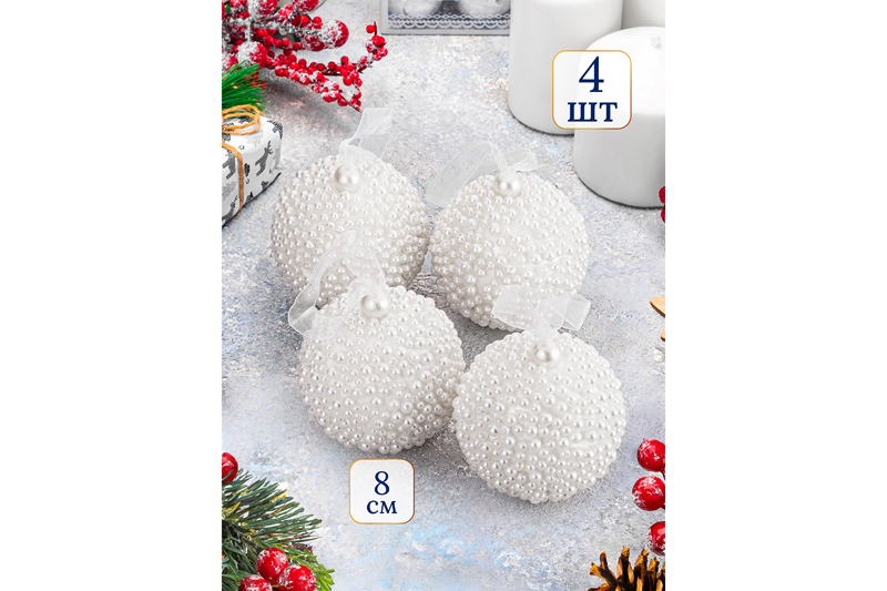 Набор 4 новогодних шаров 8*8 см "Жемчуг"