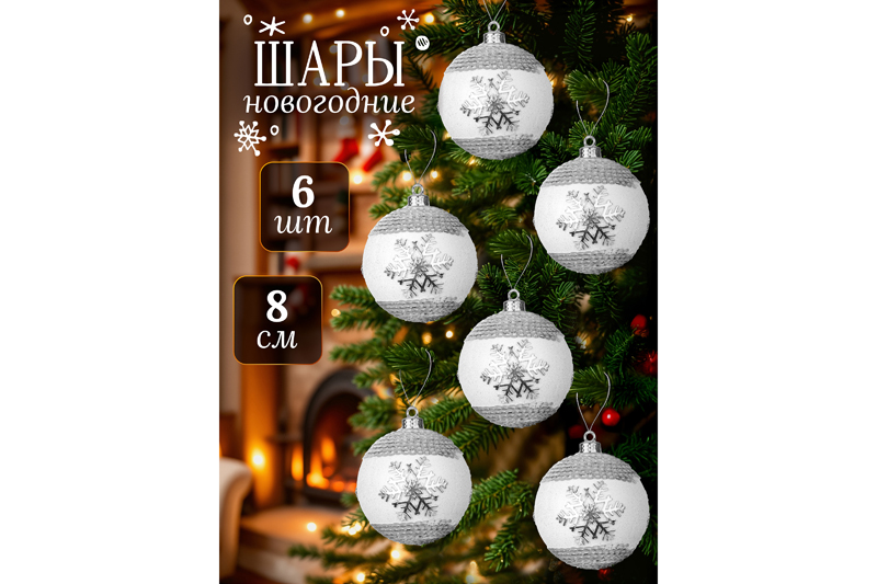 Набор 6 новогодних шаров 8*8 см "Снежинка"