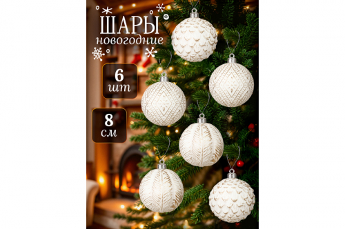 Набор 6 новогодних шаров 8*8 см "Винтажные узоры" шампань с эффектом старины