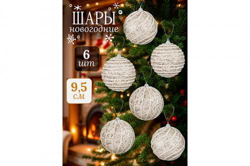 Набор 6 новогодних шаров 8*8 см "Винтаж" шампань с эффектом старины