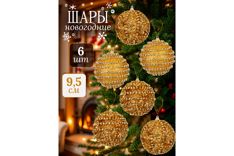 Набор 6 новогодних шаров 8*8 см "Золото"