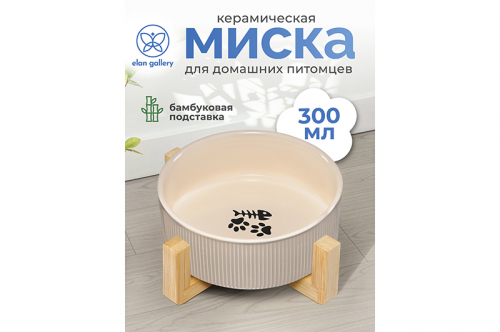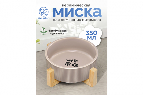 Миска для домашних питомцев 300 мл 12,5*12,5*6 см, с бамбуковой подставкой, бежевая