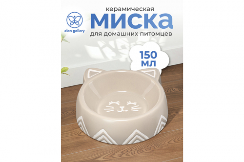 Миска для домашних питомцев 150 мл 14*13,5*4,5 см, бежевая, керамика