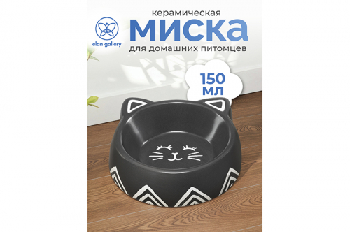 Миска для домашних питомцев 150 мл 14*13,5*4,5 см, темно-серая, керамика