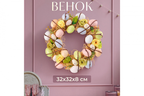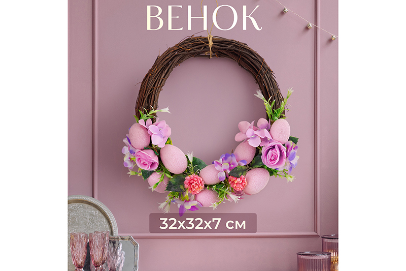 Пасхальное украшение венок 32*32*7,5 см "Сиреневый шарм"