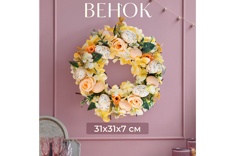 Пасхальное украшение венок 31*31*7,5 см "Солнечный свет"