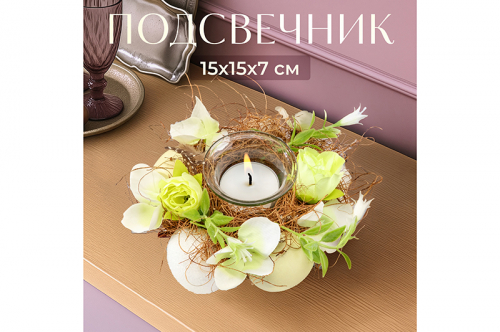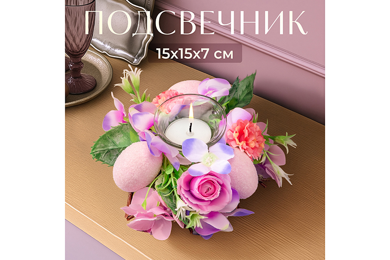 Пасхальное украшение подсвечник 15*15*7 см "Розовая феерия" на 1 свечу