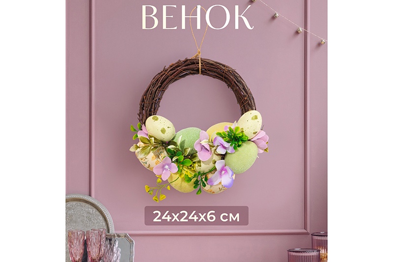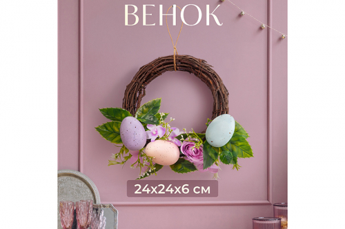 Пасхальное украшение венок 24*24*6,5 см "Нежность"