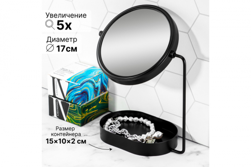 Зеркало настольное двустороннее с контейнером 19*10*26 см "Черное"