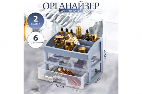 Органайзер для косметики 2 ящика 25,8*17,8*20 см серо-синий/прозрачный (модель 330249)