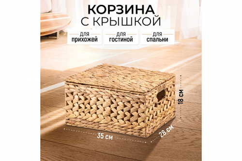 Корзина плетеная д/хранения 35,5*28*18,5 см, водный гиацинт