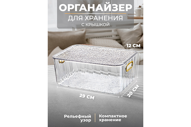 Органайзер д/хранения с крышкой 33,5*26*8,5 см, прозрачный пластик