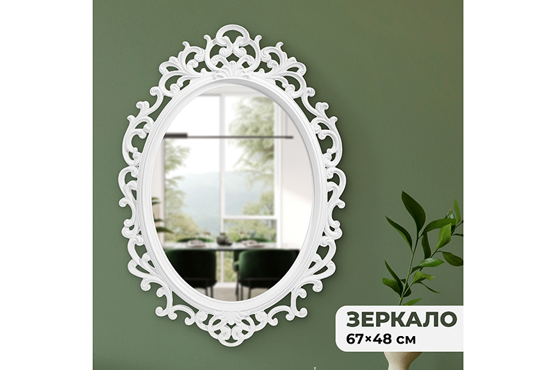 Зеркало настенное декоративное 67*48*3,5 см, белая рама, пластик