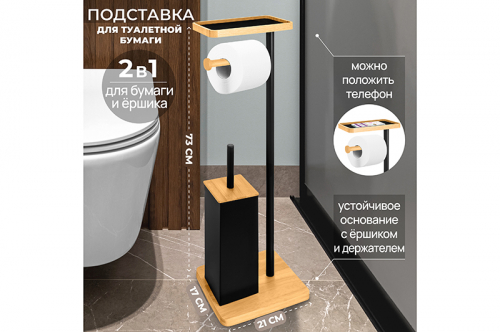 Подставка для туалетной бумаги с ершиком 21*17*73 см "Черный", металл/бамбук