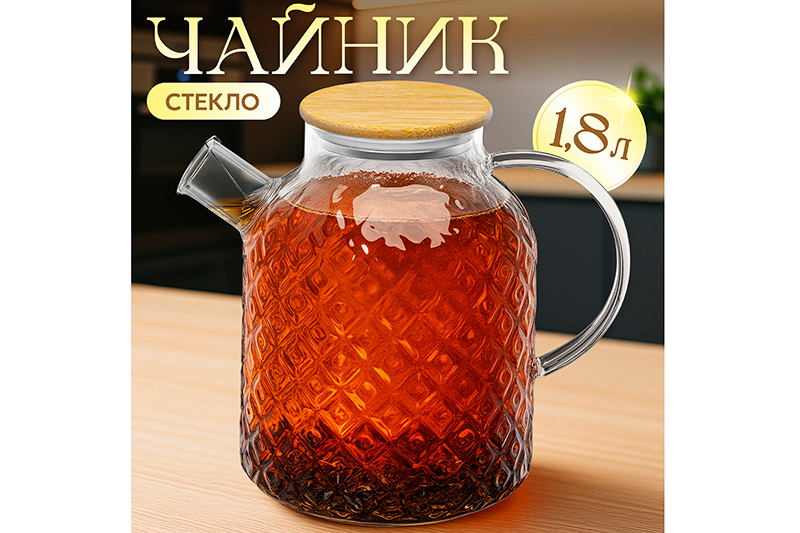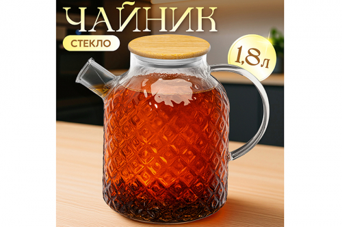 Чайник 1,8 л 20*13,5*18,5 см "Crystal glass" с ситом+бамб.крышк.с метал.дном с силик.уплот.стекло