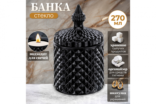 Банка д/хранения 270 мл 8,5*8,5*14 см с крышкой "Ромбики", черный, стекло