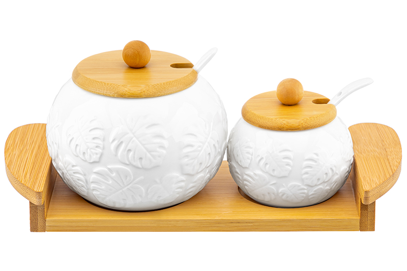Набор - сахарница 550 мл + солонка 170 мл 27*11,5*12 см "Тропики" + 2 ложки на дер. подст.