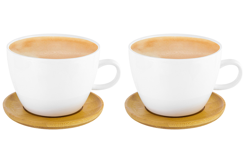 БЫЛО 968 руб! Чашка для капучино и кофе латте 500 мл "Снежная королева" + дерев. подставка (2 шт.)