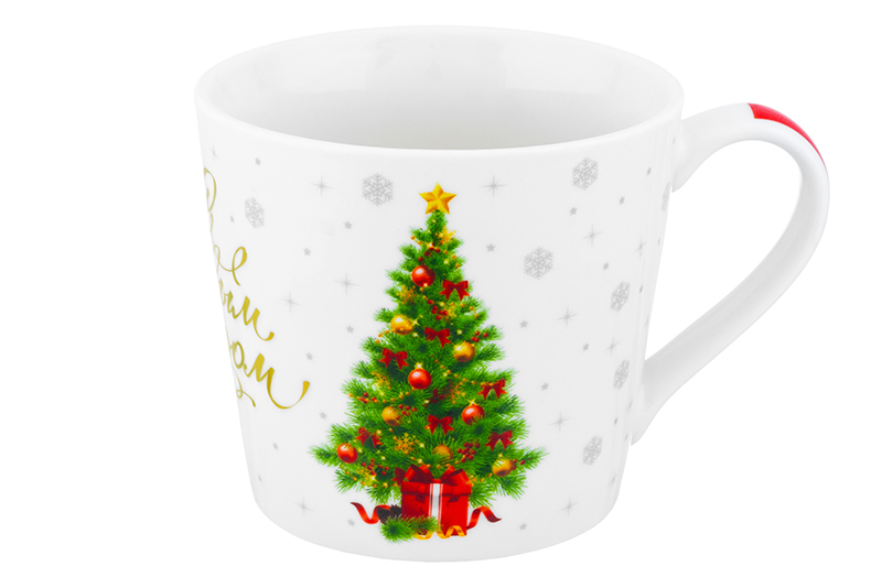 БЫЛО 338 руб! Кружка 380 мл 13*9,7*9 см "Праздничная ель" с золотом NEW BONE CHINA