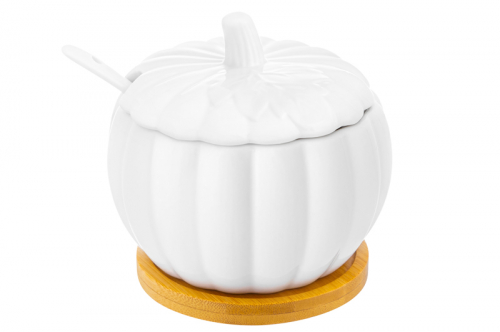 БЫЛО 546 руб! Сахарница 350 мл 10,8*10,8*10 см "Тыква" + ложка + дерев. подставка