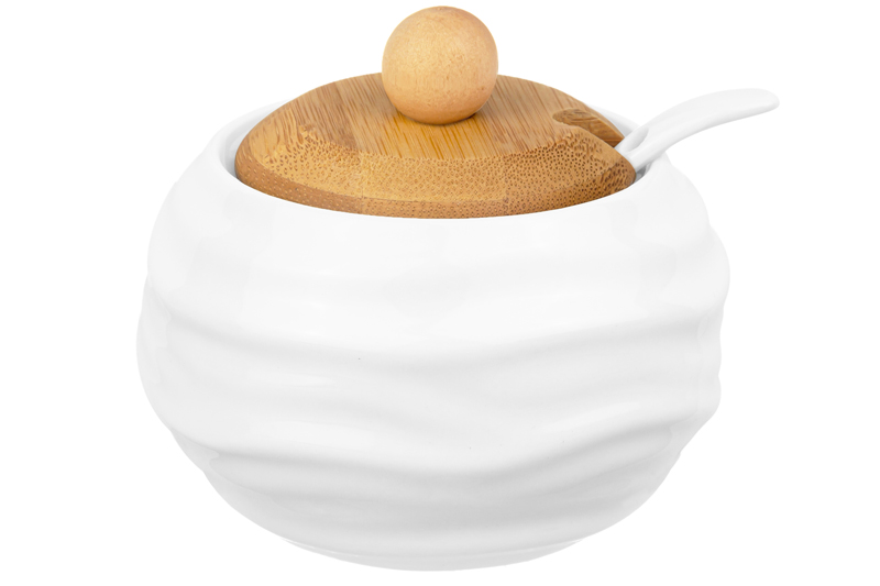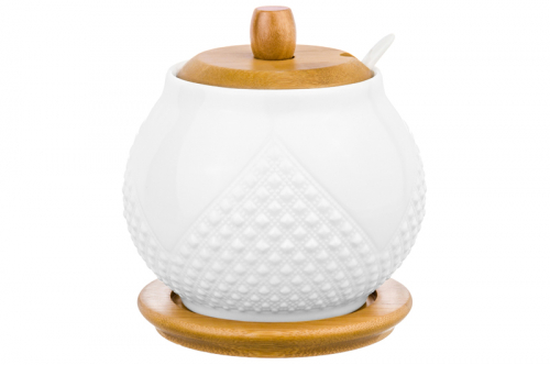 БЫЛО 533 руб! Сахарница 620 мл 11*11*12 см "Ромбики" + ложка + дер. крышка на дер. подставке
