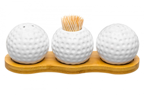 БЫЛО 493 руб! Вазочка под зубочистки + набор для специй 2 пр. 19,5*7*6 см 75 мл "Сфера" на деревянной подставке