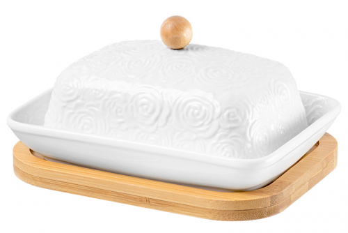 БЫЛО 937 руб! Масленка 16,5*13*8,5 см "Розы" на деревянной подставке